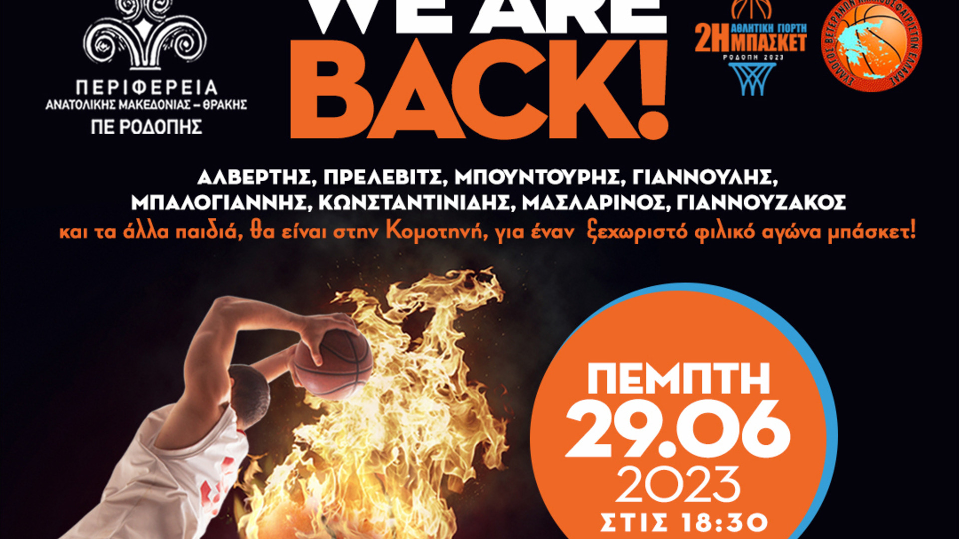 2η Αθλητική Γιορτή Μπάσκετ στη Ροδόπη: Φιλικός Αγώνας Βετεράνων Καλαθοσφαίρισης Ελλάδας και Κομοτηνής