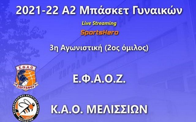 Παρακολουθήστε σε Live Streaming την αναμέτρηση ανάμεσα στον ΕΦΑΟΖ και τον ΚΑΟ Μελισσίων, για την 3η αγωνιστική του 2ου ομίλου της Α2 Γυναικών.