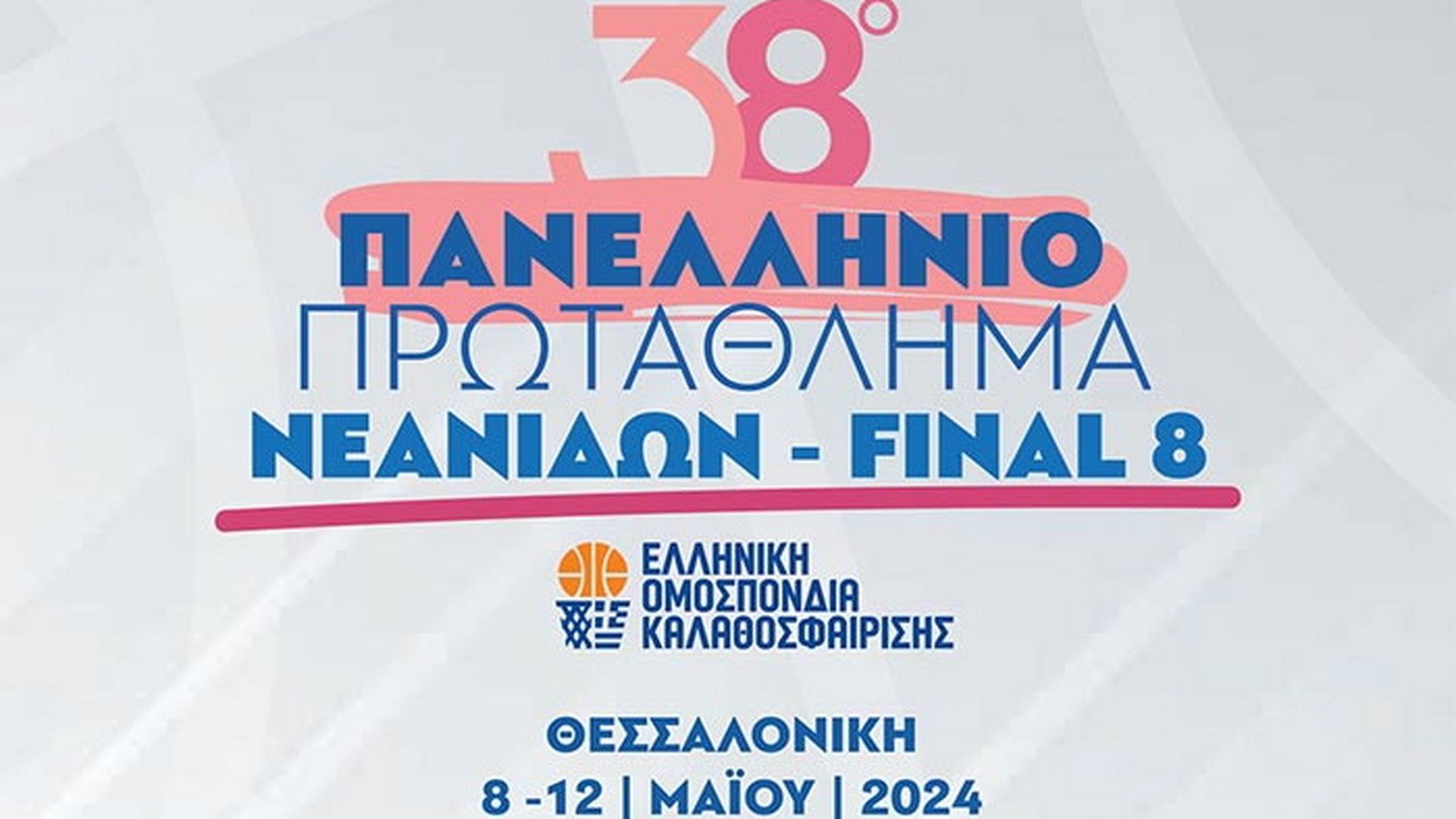 Το πρόγραμμα της τελικής φάσης του 38ου Πανελληνίου Πρωταθλήματος Νεανίδων 2023 – 2024 που θα διεξαχθεί στο ΚΓ Καλαμαριάς Θεσσαλονίκης το διάστημα 8-12 Μαϊου έχει ως εξής: