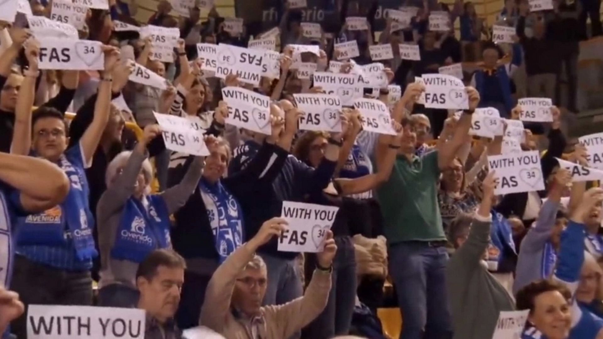 Συγκεκριμένα, οι φίλαθλοι της ισπανικής ομάδας χάρισαν ένα συγκινητικό standing ovation στην Μαριέλλα Φασούλα, μετά τον σοβαρό τραυματισμό της στο αριστερό γόνατο, εκφράζοντας με αυτόν τον τρόπο την συμπαράσταση τους στην Ελληνίδα σέντερ.