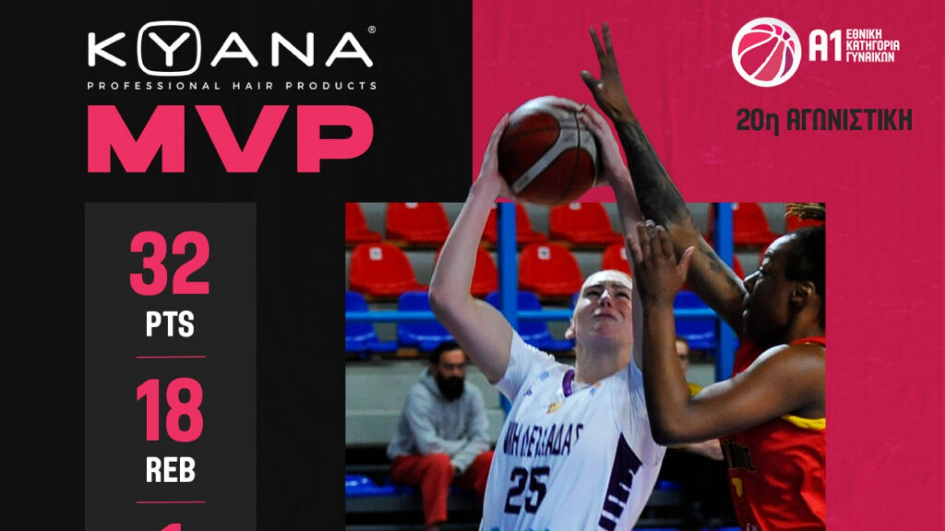Κριστίνα Μόρα (Νίκη Λευκάδας): 16 πόντοι, 12 ριμπάουντ