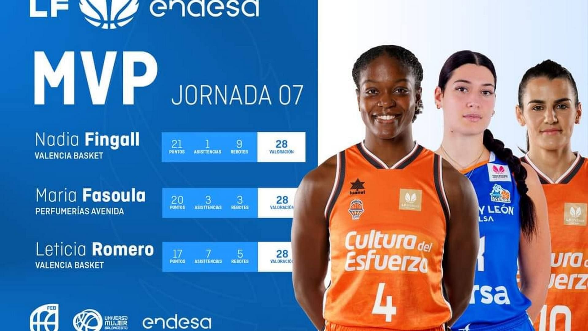Ανάμεσα στις πολυτιμότερες παίκτριες της 7ης αγωνιστικής ισπανικής λίγκας γυναικών αναδείχθηκε η Μαριέλλα Φασούλα, με την Ελληνίδα σέντερ να επιβραβεύεται για την εμφάνισή της κόντρα στη Θέλτα.