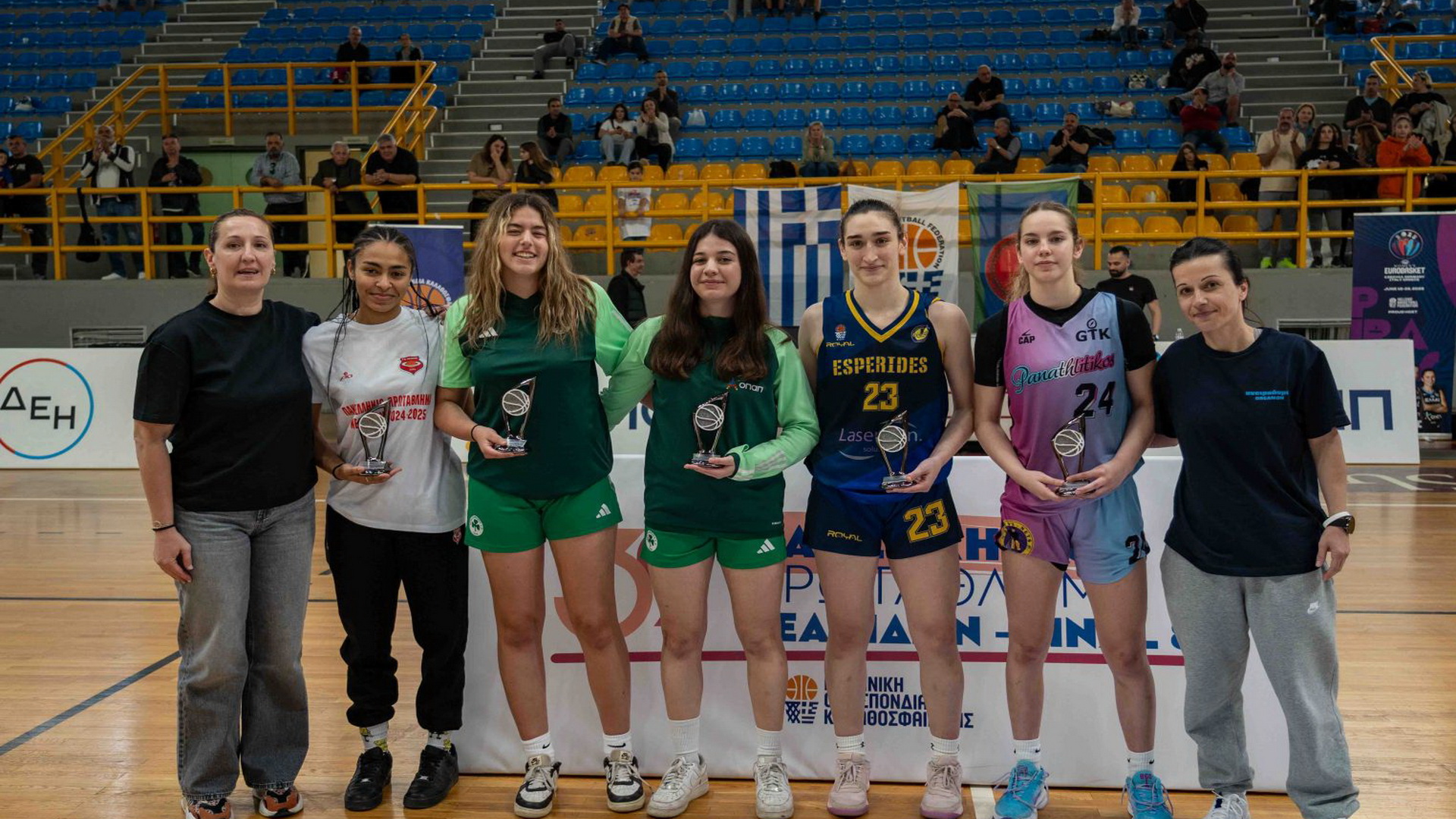 Επίσης κατόπιν ψηφοφορίας των προπονητών η καλύτερη πεντάδα της διοργάνωσης αποτελείται από τις Ειρήνη Πατσιατζή (Παναθηναϊκός), Βασιλική Χωλοπούλου(Παναθλητικός), Μυρτώ Λιανούδη (Εσπερίδες), Βίκυ Σταθοπούλου (Κρόνος) και Καμπάκα Σοφία (Παναθηναϊκός). Τα αναμνηστικά παρέδωσαν η Τούλα Καλέντζου και η προπονήτρια της εθνικής παγκορασίδων Κατερίνα Ανδριοπούλου .