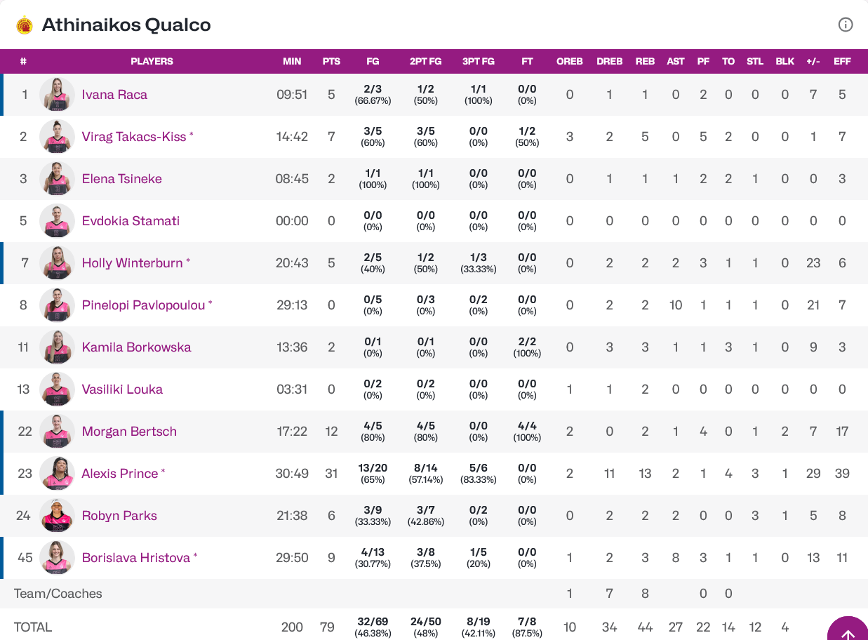 31 πόντους και 13 ριμπάουντ είχε η απολαυστική Πρινς, με την Μπερτς να ακολουθεί με 12 πόντους, ενώ για την Γκορζόβ, η Χαρτ είχε 16 πόντους και 10 ριμπάουντ, με την Ριντ να προσθέτει 13.