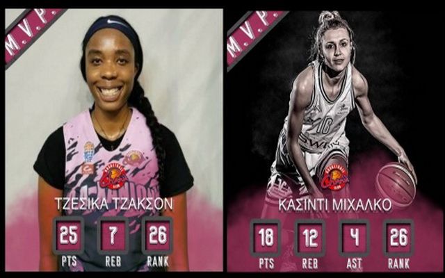 Στις Τζέσικα Τζάκσον και Κάσιντι – Ρόουζ Μιχάλκο, απονεμήθηκε το βραβείο της MVP της 4ης αγωνιστικής του πρωταθλήματος της Α1 Γυναικών.