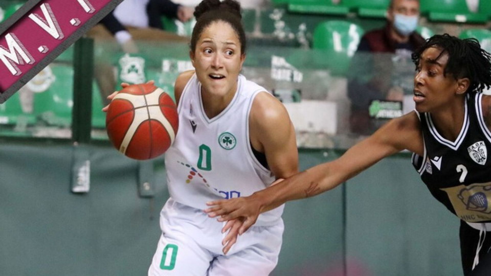 Η Αμερικανίδα φόργουορντ του Παναθηναϊκού είχε 26 πόντους, 12 ριμπάουντ, δύο κλεψίματα και 27 στο σύστημα ranking, στην νίκη της ομάδας της επί του ΠΑΟΚ με 64-54.
