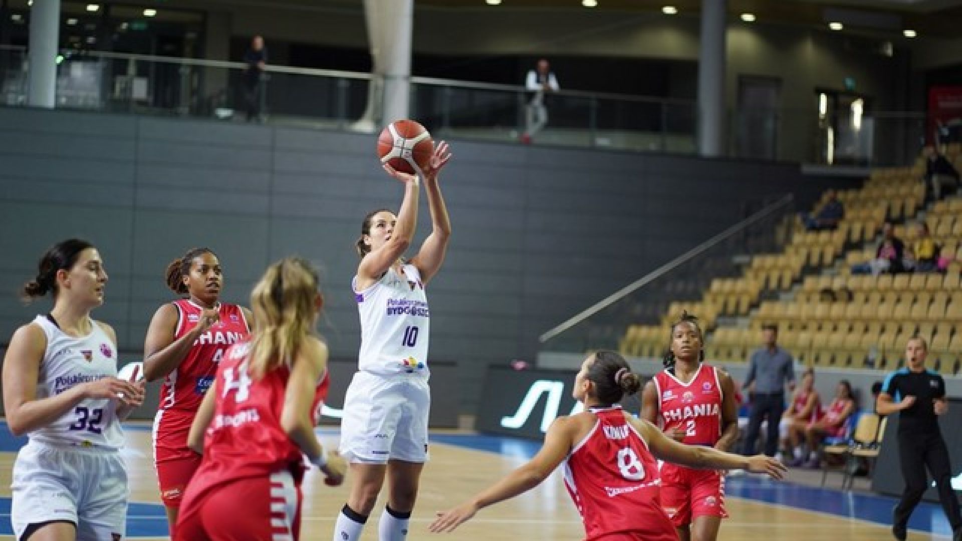 Ο ΟΑ Χανίων κατάφερε μόνο στην πρώτη περίοδο να σταθεί ανταγωνιστικά κόντρα στην πολωνική ομάδα, καθώς με πρωταγωνίστριες τις Κόλεμαν και Σιέρα κατάφεραν να είναι πάντα κοντά στο σκορ. Το πρώτο δεκάλεπτο έκλεισε με σκορ 22-20.