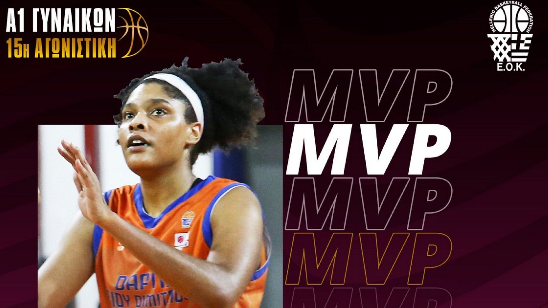 Τη διάκριση της MVP της 15ης αγωνιστικής κέρδισε η Γέμιγια Μόρις της Δάφνης Αγίου Δημητρίου, με την Αμερικανίδα ψηλή να κάνει νταμπλ νταμπλ συλλέγοντας 35 μονάδες στο σύστημα αξιολόγησης.