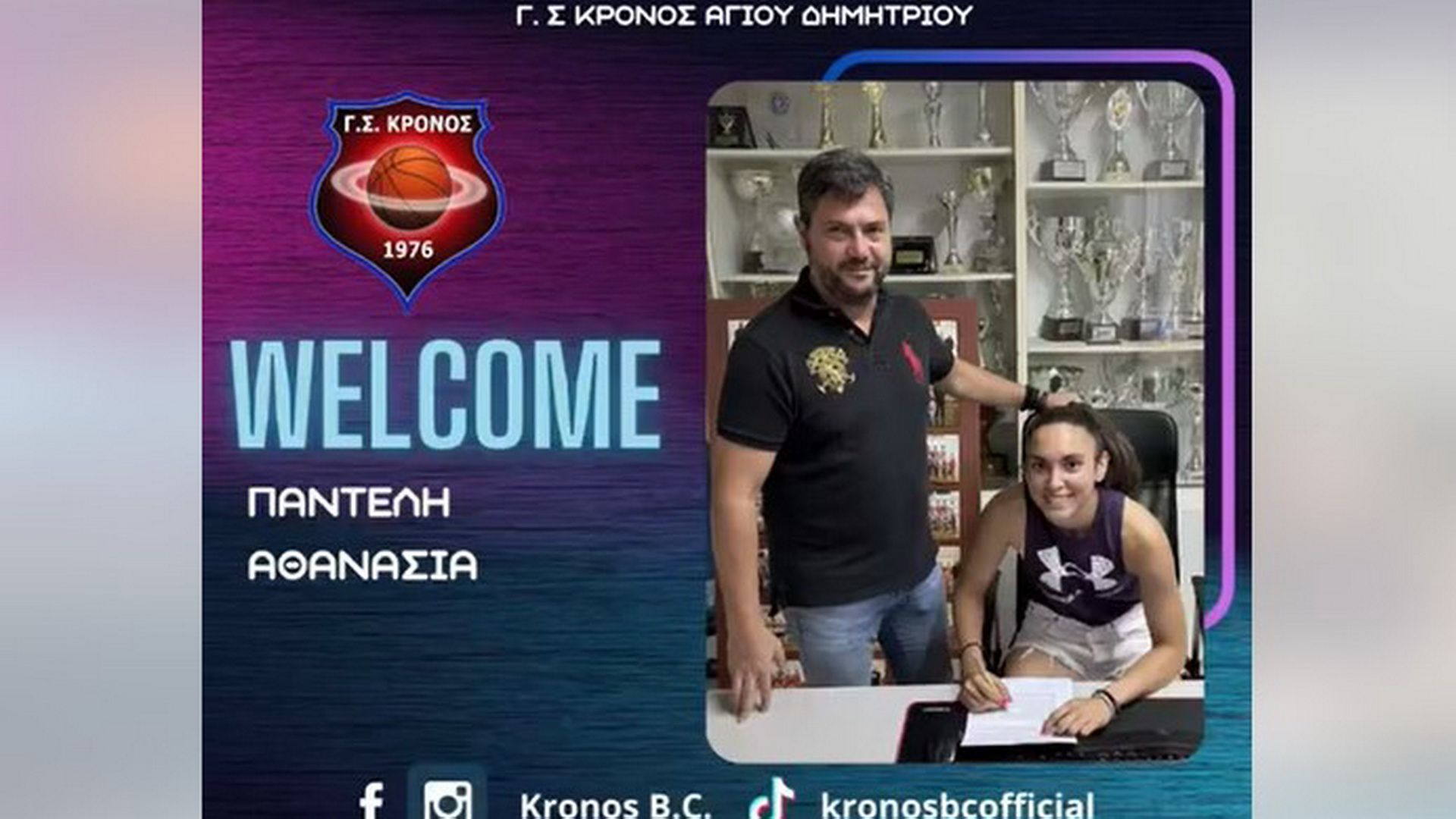 Αθανασία υγεία και πολλές νίκες σου ευχόμαστε με την ομάδα μας! Καλωσόρισες στην οικογένεια του Γ.Σ Κρόνου Αγίου Δημητρίου!