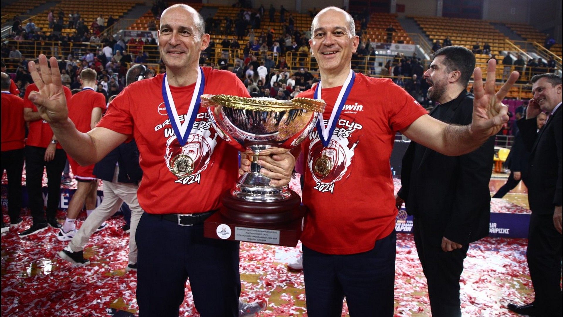Με την κατάκτηση του Κυπέλλου στην Κρήτη, ο Ολυμπιακός «έγραψε» ένα σπουδαίο ρεκόρ, καθώς ήταν ο 7ος σερί τίτλος του! «Είναι μεγάλο επίτευγμα, μας κάνει περήφανους και ελπίζω να πάμε για τον 8ο σερί», είπε ο κ.Παναγιώτης Αγγελόπουλος, ενώ ο κ. Γιώργος Αγγελόπουλος, τόνισε πως: «Εφτά τίτλοι σε 2.5 χρόνια είναι απίστευτο. Ζούμε αυτά που αξίζουμε και αυτά που αξίζαμε πάντα. Τα έφερε έτσι η ζωή και τα ζούμε. Για αυτό έχουμε αυτά τα συναισθήματα».