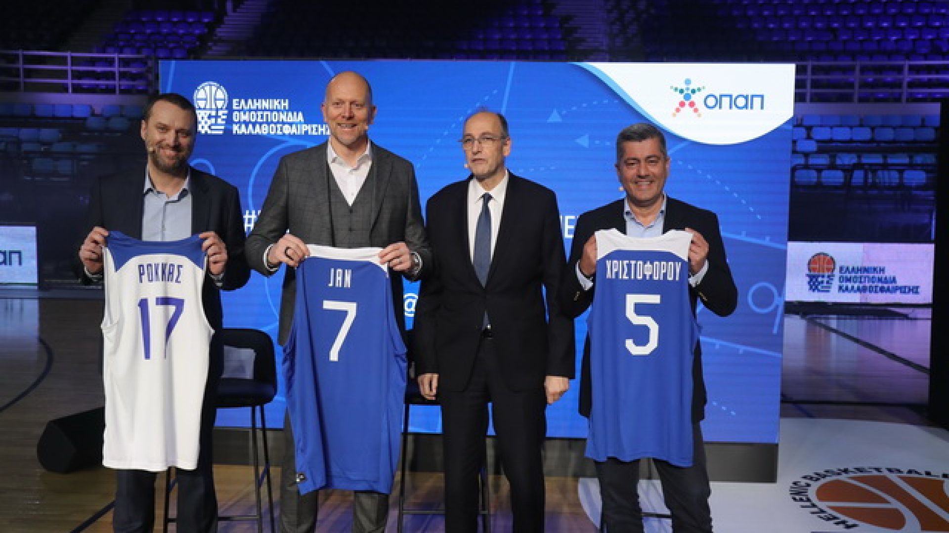 ΕΟΚ και ΟΠΑΠ έδωσαν τα χέρια, με την Ομοσπονδία να παρουσιάζει τον νέο κεντρικό χορηγό των εθνικών ομάδων για την επόμενη τριετία, σε εκδήλωση που πραγματοποιήθηκε, στο κλειστό των Άνω Λιοσίων, το πρωί της Τετάρτης (23/2) και στην οποία βρέθηκε πλήθος κόσμου από τον χώρο του μπάσκετ.