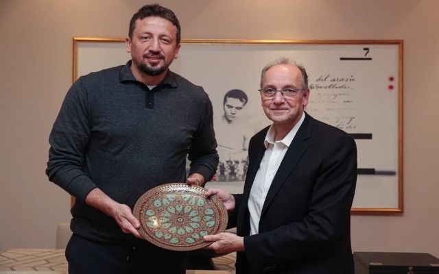 Οι δύο άνδρες συζήτησαν σε άριστο κλίμα, μοιράστηκαν ιδέες για το ευρωπαϊκό μπάσκετ και την περαιτέρω ανάπτυξή του και αντάλλαξαν αναμνηστικά.