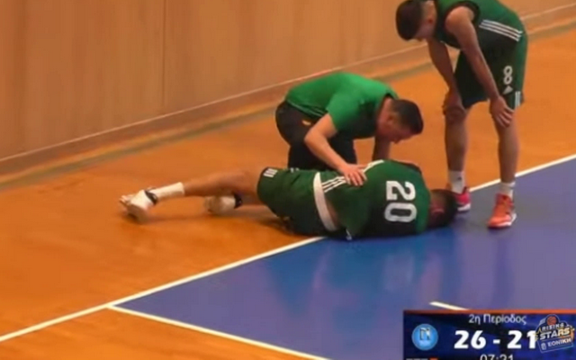 Ο παίκτης των πράσινων έκανε άλμα προκειμένου να μαρκάρει τον αντίπαλο από τη μικτή του Βορρά, ωστόσο όταν πάτησε τα πόδια στο παρκέ το δεξί του φάνηκε να γυρίζει άσχημα.