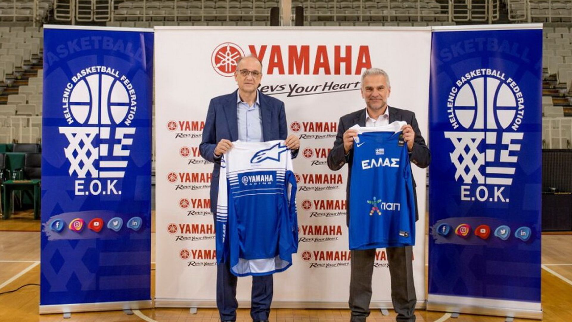 Την έναρξη της χορηγίας της Yamaha προς την Ελληνική Ομοσπονδία Καλαθοσφαίρισης επισημοποίησαν ο Γενικός Διευθυντής κλάδου Yamaha της ΜΟΤΟΔΥΝΑΜΙΚΗ, κος Ιωάννης Σώκιαλης και ο Πρόεδρος της ΕΟΚ, κος Ευάγγελος Λιόλιος.