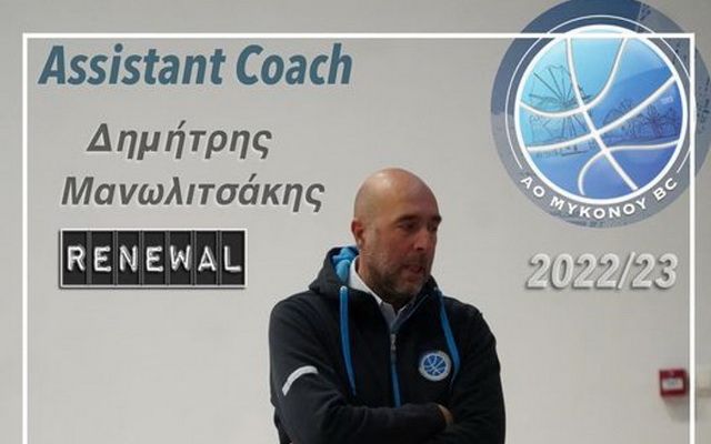 Στην Μύκονο θα συνεχίσει και την νέα σεζόν ο Δημήτρης Μανωλιτσάκης, ο οποίος θα αποτελέσει τον άμεσο συνεργάτη του Γιάννη Τζήμα, στην συμμετοχή της ομάδας στην Β’ Εθνική.