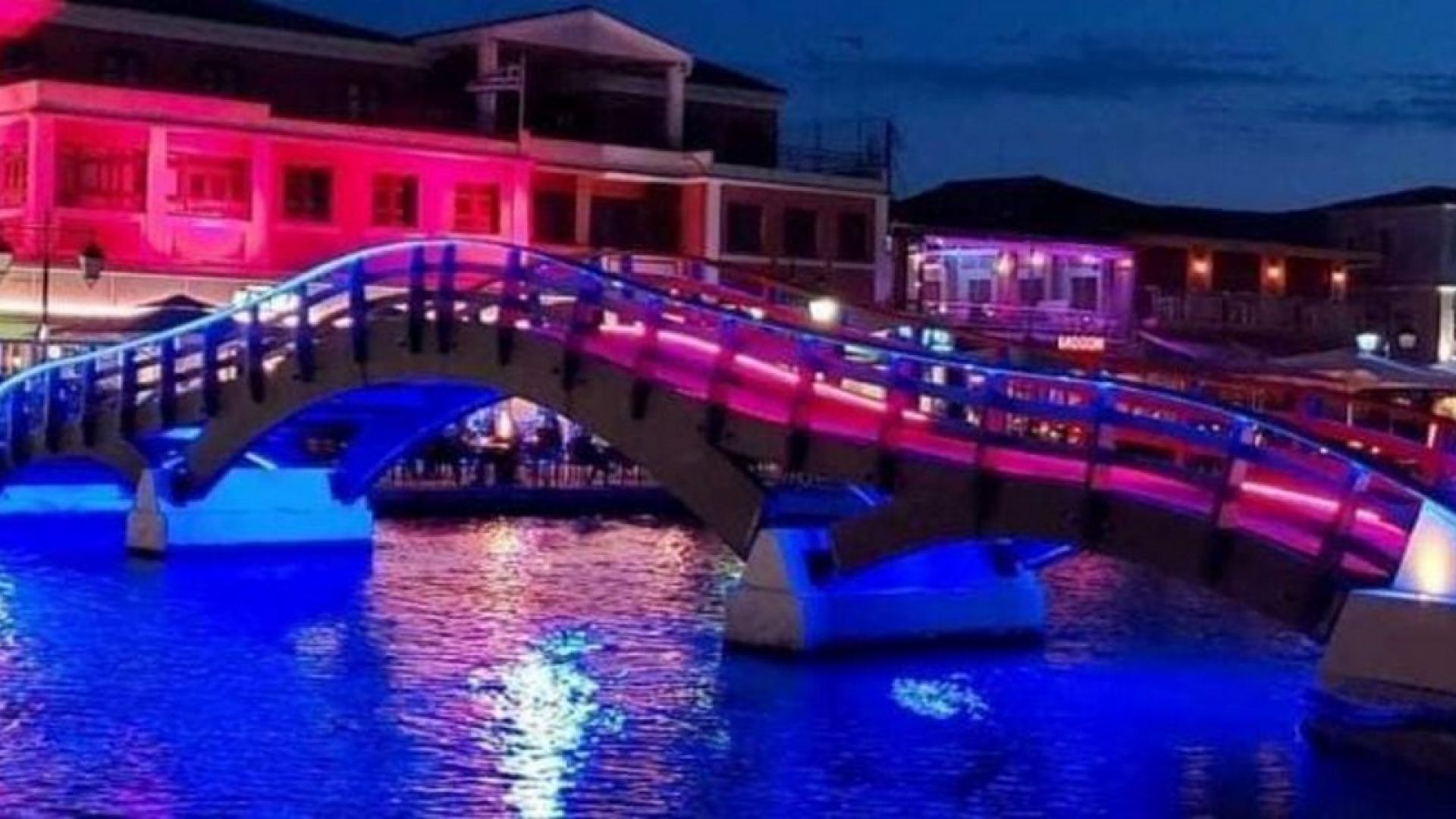 Στα χρώματα της Δόξας Λευκάδας φωταγωγήθηκε η ξύλινη γέφυρα του νησιού ως τιμή για την άνοδο της ομάδας στην Elite League.