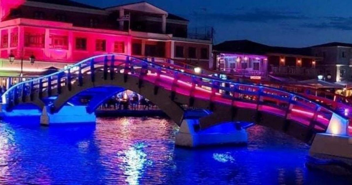 Λευκάδα - Η ξύλινη γέφυρα φωταγωγήθηκε στα χρώματα της Δόξας (pic)