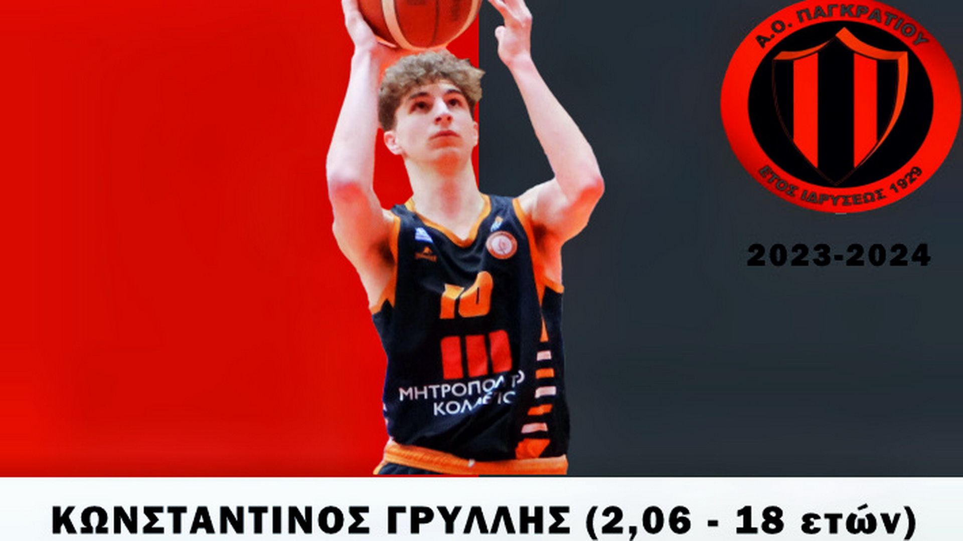«Το ΔΣ του ΑΟ Παγκρατίου βρίσκεται στην ευχάριστη θέση να ανακοινώσει τη συμφωνία του με τον Κωνσταντίνο Γρύλλη (2,06 – 18 ετών).