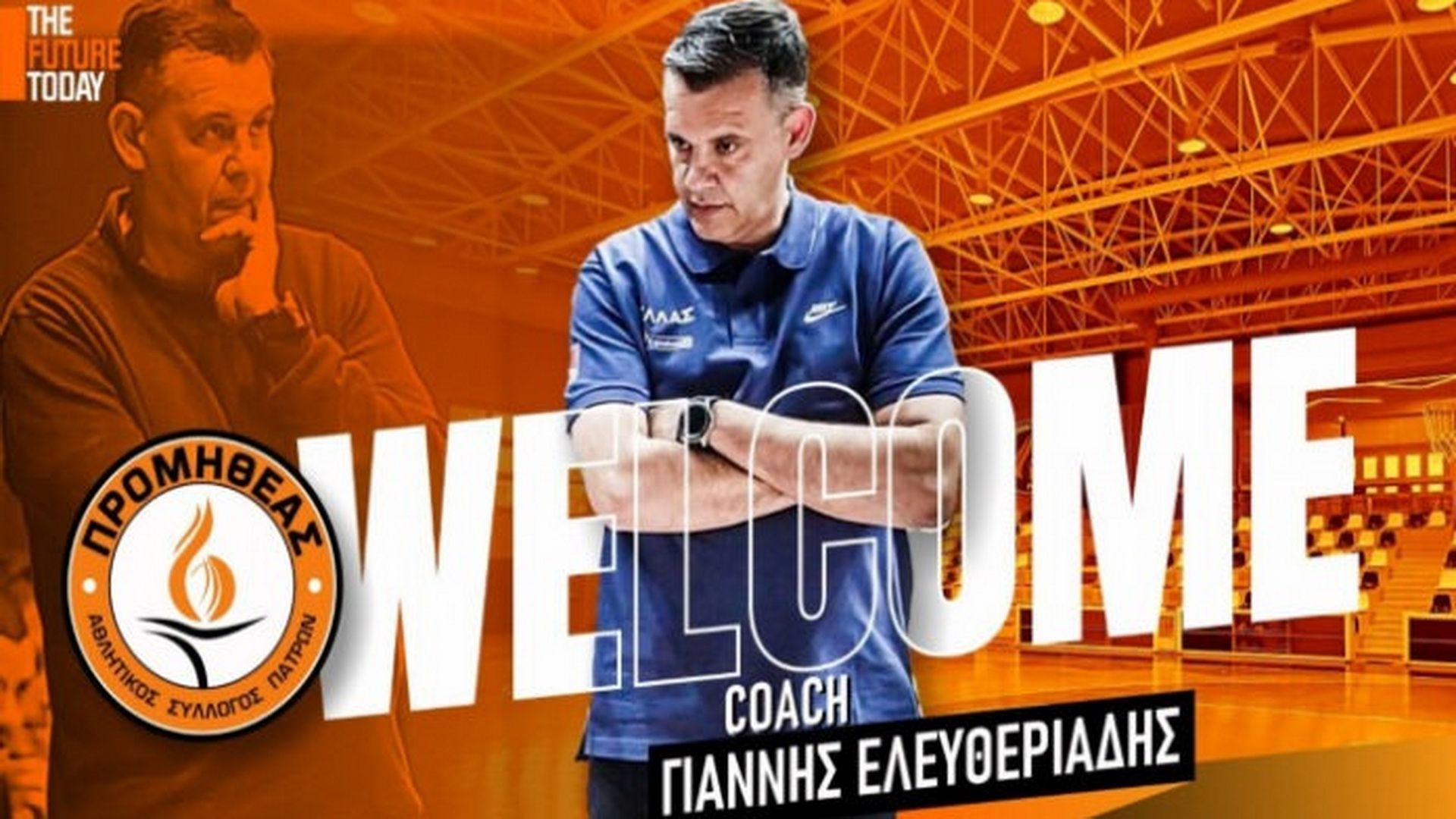 «Ο Οργανισμός του Προμηθέα Πάτρας βρίσκεται στην ευχάριστη θέση να ανακοινώσει την έναρξη της συνεργασίας του με τον πολύπειρο προπονητή, Γιάννη Ελευθεριάδη, ο οποίος αναλαμβάνει χρέη head coach στον νεοφώτιστο στο πρωτάθλημα της Β’ Εθνικής, Προμηθέα 2014, καθώς επίσης και στην εφηβική ομάδα του προγράμματος “NOUS”.