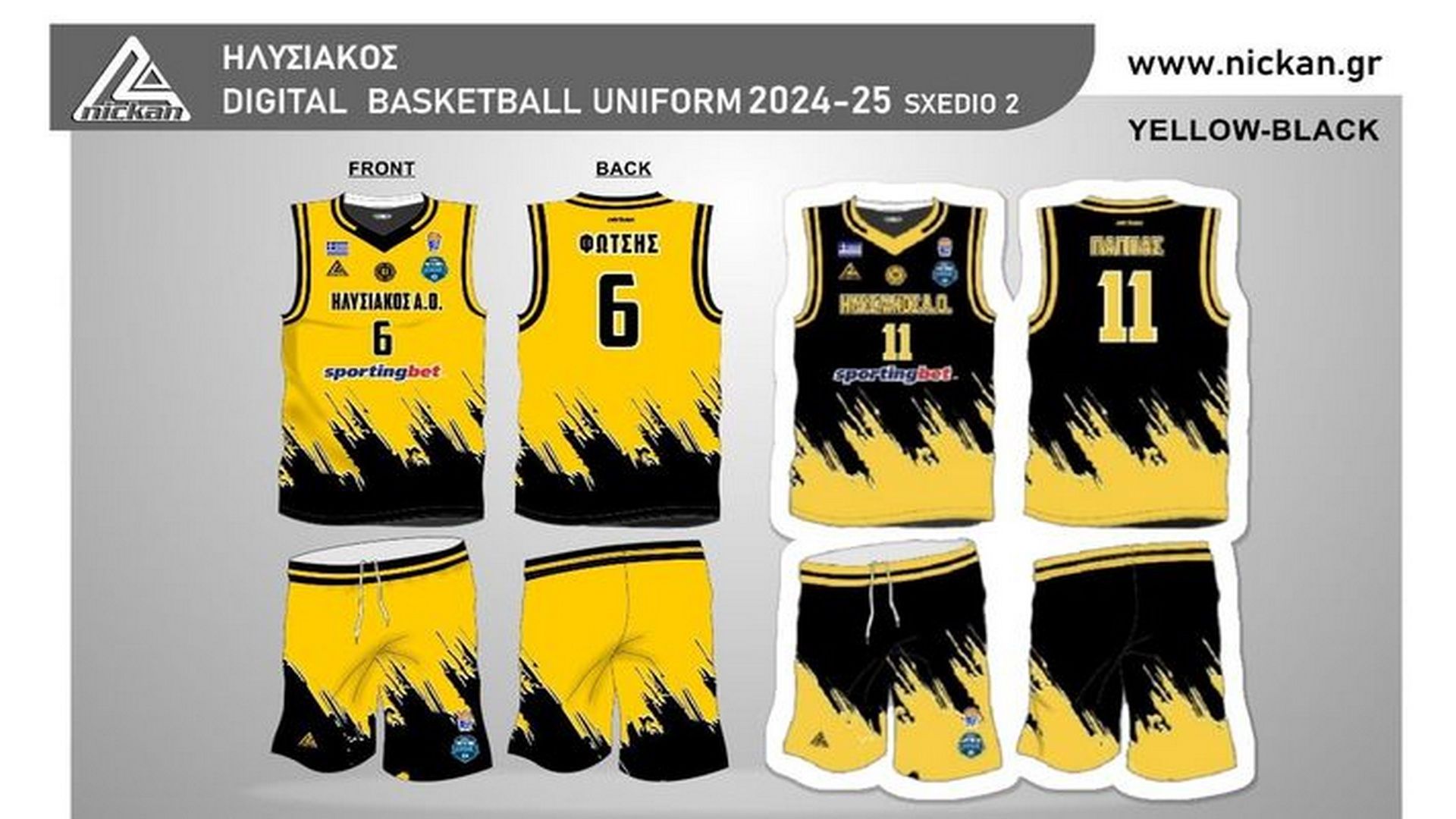Φυσικά τα χρώματα που κυριαρχούν στις εμφανίσεις της νέας σεζόν, είναι το κίτρινο και το μαύρο, με τους ανθρώπους του Ηλυσιακού να τις παρουσιάζουν, με τα ονόματα των δύο μεγάλων αστεριών της ομάδας, του Αντώνη Φώτση και του Νίκου Παππά.