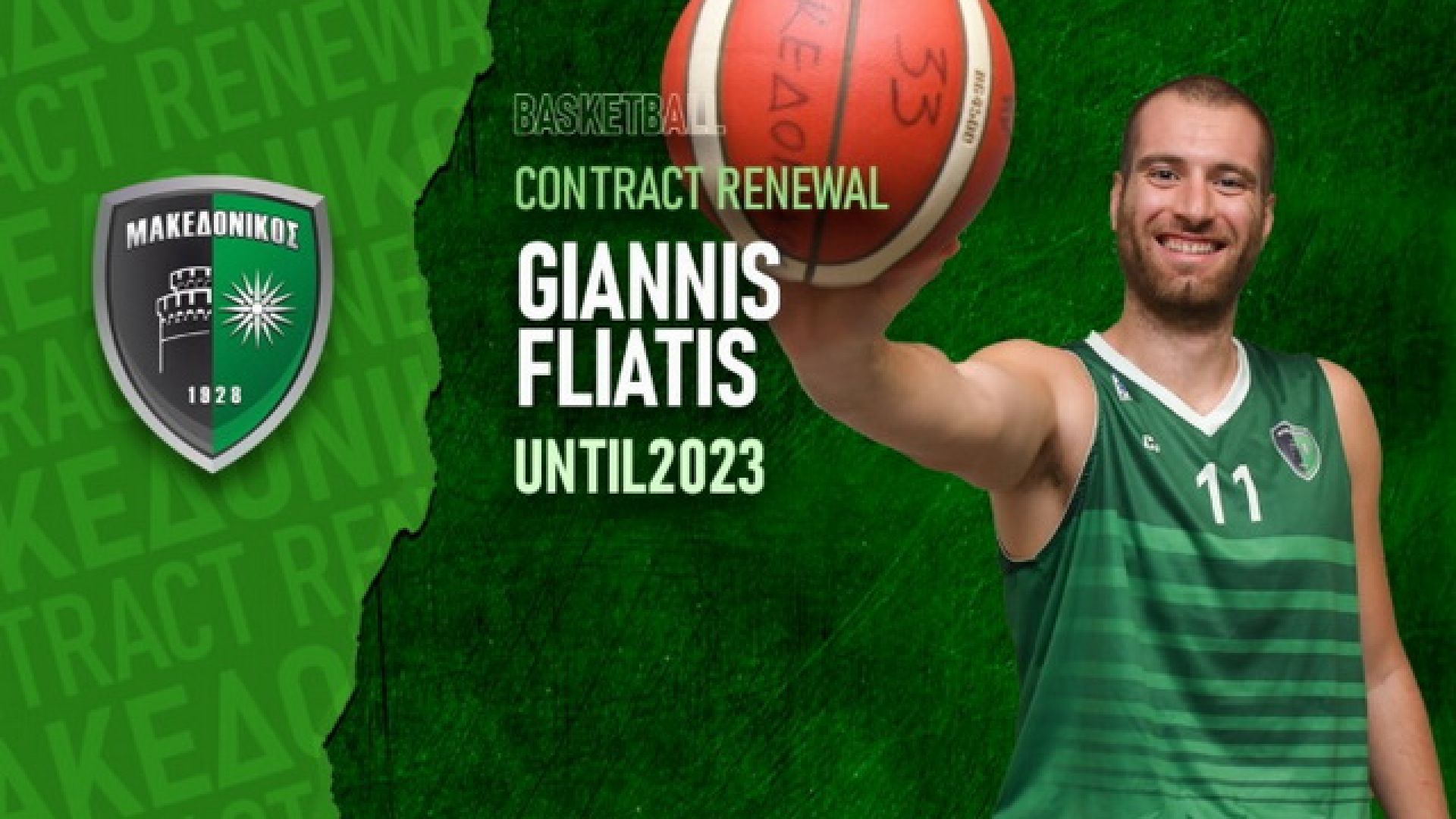 "Η διοίκηση του Μακεδονικού βρίσκεται στην ευχάριστη θέση να ανακοινώσει την ανανέωση της συνεργασίας της με τον αρχηγό της ομάδας μπάσκετ, Γιάννη Φλιάτη.