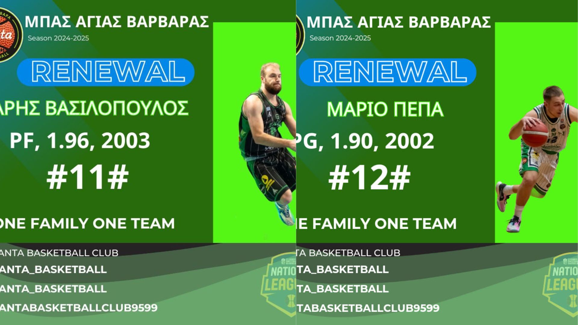 Η ομάδα της Αγίας Βαρβάρας ανακοίνωσε τις ανανεώσεις συνεργασίας της με τους Χάρη Βασιλ΄οπουλο και Μάριο Πέπα.