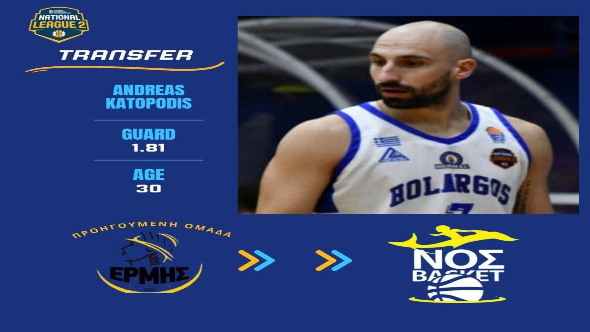 Το μεταγραφικό ντεμαράζ συνεχίζει ο ΝΟ Σαρωνίδας ενισχύοντας την θέση των γκαρντ με την μεταγραφή του Ανδρέα Κατοπώδη.
