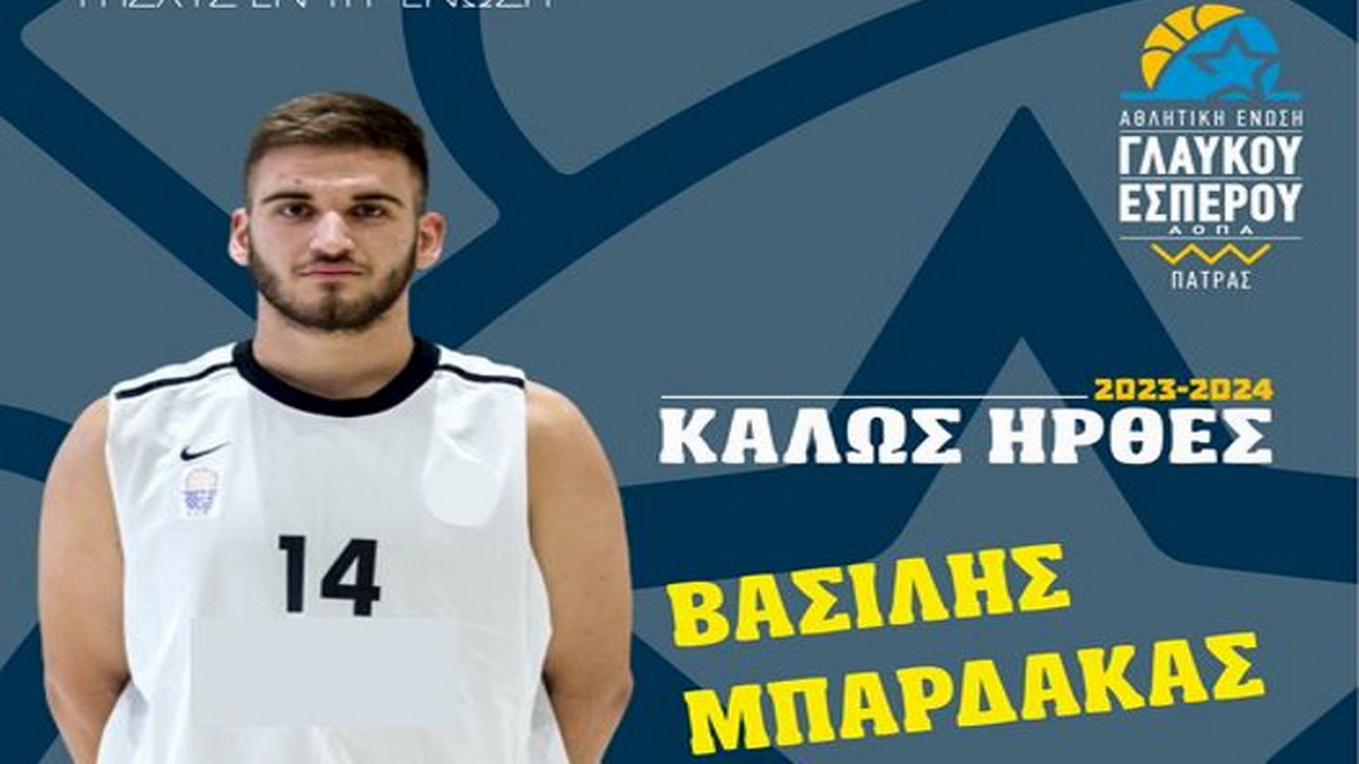 Μεταγραφική ενίσχυση για τον Γλαύκο/Έσπερο, με την ομάδα της Πάτρας να ανακοινώνει την απόκτηση του Βασίλη Μπάρδακα.