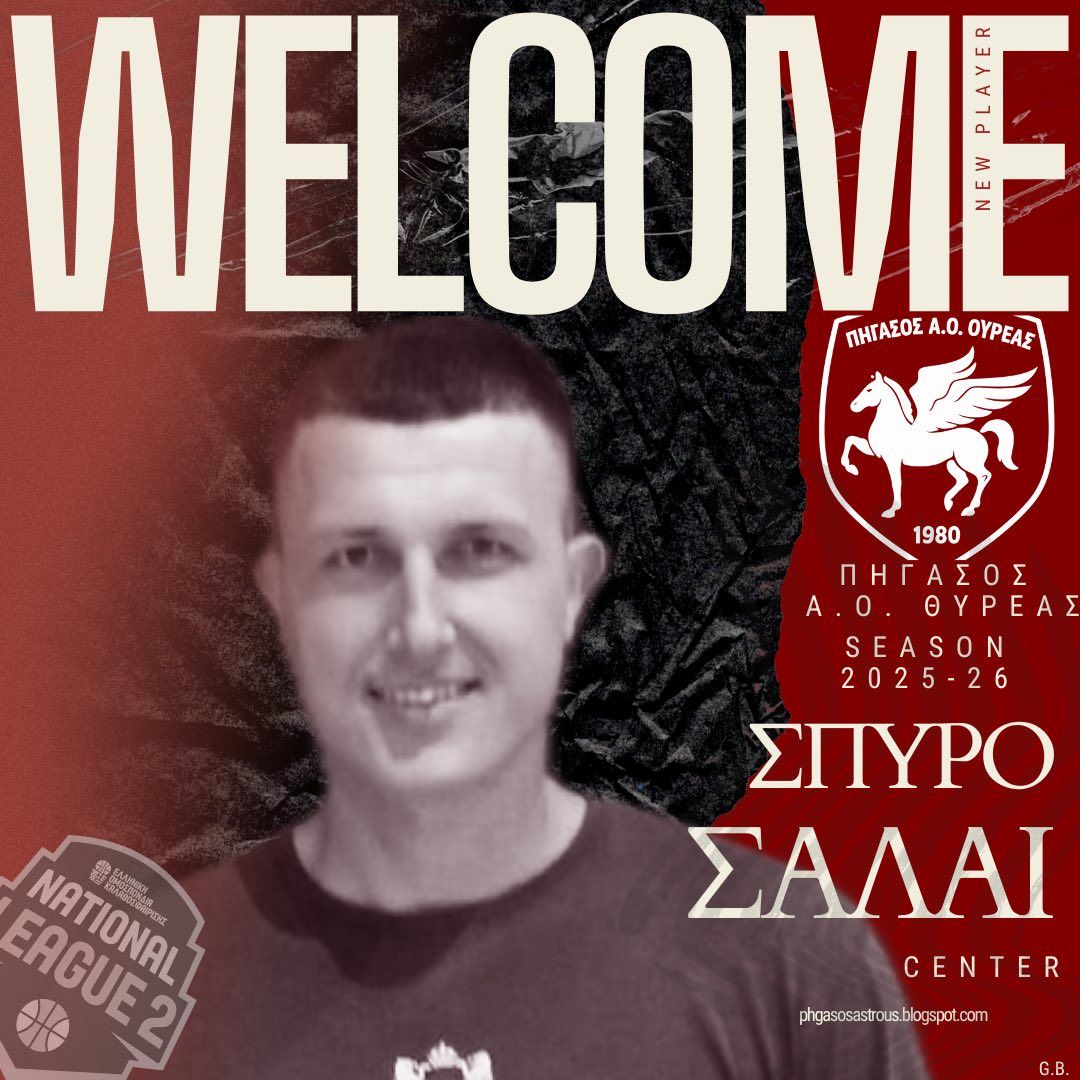 Ο Πήγασος Α.Ο. Θυρέας ανακοινώνει την έναρξη της συνεργασίας του με τον Σπύρο Σαλάι, 28 ετών, με ύψος 2,03 μ.