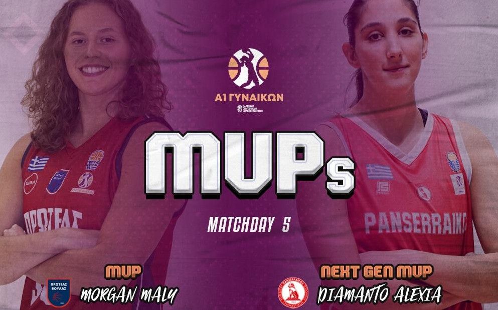 Η 5η αγωνιστική στην Α1 Γυναικών ολοκληρώθηκε. Πολυτιμότερες παίκτιρες αναδείχθηκαν οι Λόρεν Μάλι του Πρωτέα Βούλας και Διαμάντω Αλεξιά του Πανσερραϊκού.