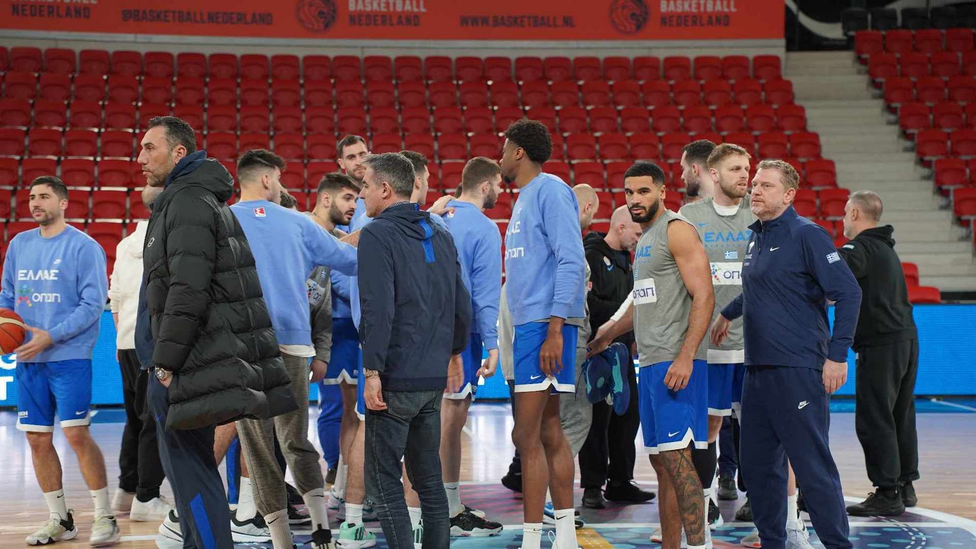 Η Εθνική μας ομάδα προπονήθηκε σήμερα το πρωί (26/2) στην Χάγη ενόψει του αγώνα κόντρα στην Ολλανδία για την 2η αγωνιστική των προκριματικών του Eurobasket 2025 (26/2,20:30).