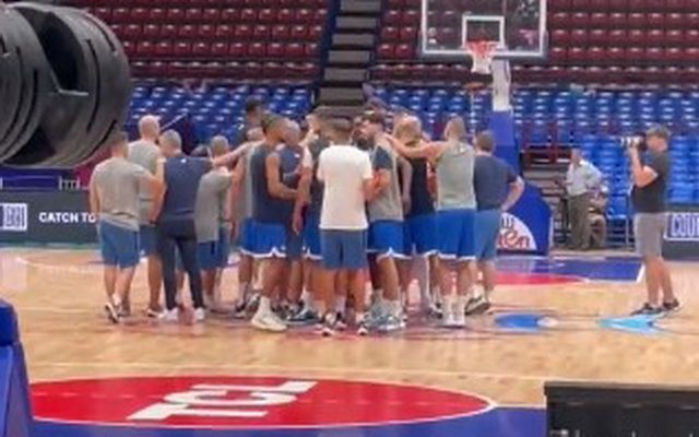 Οι παίκτες της «επίσημης αγαπημένης» πάτησαν παρκέ, με το πρώτο «Ελλάς» των παικτών να ακούγεται στο «Φόρουμ».