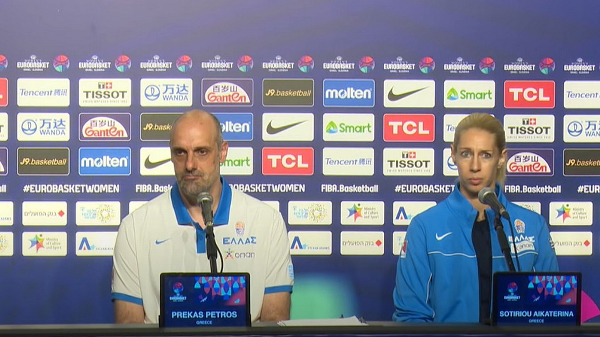 Πέτρος Πρέκας και Κατερίνα Σωτηρία εκπροσώπησαν την Εθνική Γυναικών στην συνέντευξη Τύπου ενόψει του Ευρωμπάσκετ Γυναικών και του αγώνα της Πέμπτης απέναντι στο Μαυροβούνιο (15/6, 12:15).
