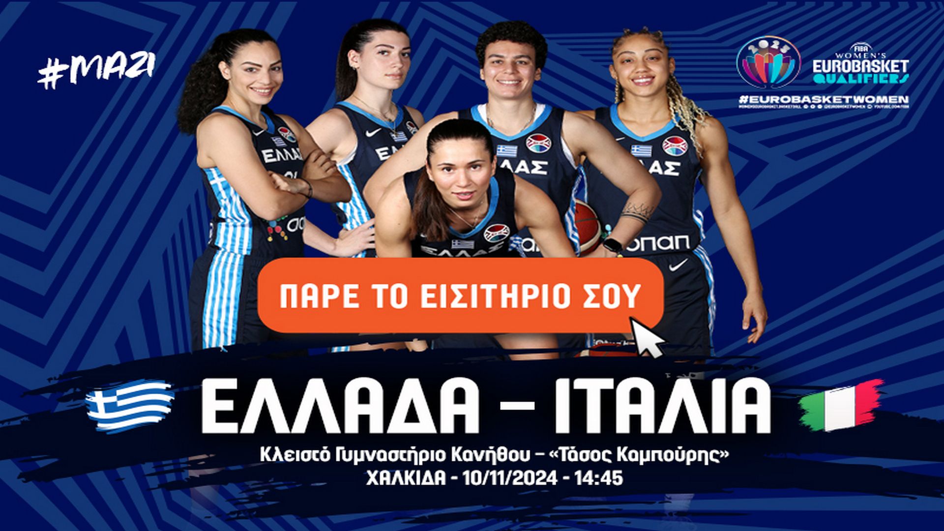 Στην διάθεση του κοινού βρίσκονται τα εισιτήρια για τον αγώνα της Εθνικής Γυναικών απέναντι στην Ιταλία, σε ένα παιχνίδι που θα πραγματοποιηθεί το Σάββατο 10 Νοεμβρίου στην Χαλκίδα.