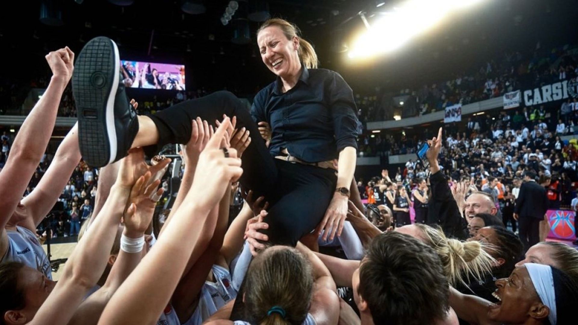 Η Στέλλα Καλτσίδου αποχαιρετά με τον καλύτερο τρόπο την ομάδα των Λόντον Λάιονς πανηγυρίζοντας και το πρωτάθλημα μετά της Μεγάλης Βρετανίας μετά την κατάκτηση του Eurocup Γυναικών.