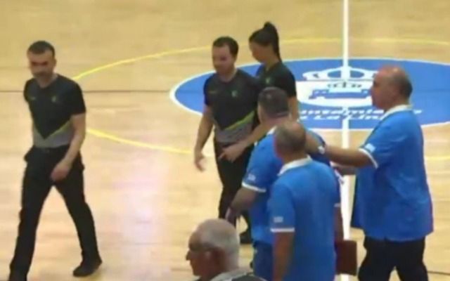 Η γαλανόλευκη ήταν μπροστά με 38-37 με 2:15 πριν το ημίχρονο να απομένουν. Ο κόουτς Μάκης Γιατράς έκανε παράπονα και διαμαρτυρίες, μ αποτέλεσμα να αποβληθεί, αλλά αρνήθηκε να φύγει για τα αποδυτήρια και κάθισε σε μια καρέκλα στην άκρη του πάγκου του.