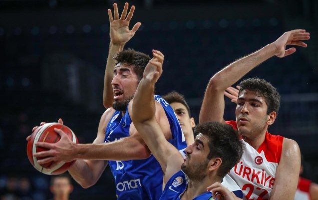 Ο Όμηρος Νετζήπογλου ήταν αυτός που επιθετικά έκανε ένα βήμα μπροστά στα πρώτα λεπτά για την ελληνική ομάδα. Έγραψε το 0-4 (1’20’’) και το 6-7 (4’30’’) με δικούς του πόντους, για να περάσει η σκυτάλη στη συνέχεια και στους συμπαίκτες του με τον Σωτήρη Οικονομόπουλο να γράφει το 15-23 (9’30’’). Ο ίδιος διαμόρφωσε και το 19-25 (12’) με τους οικοδεσπότες να κάνουν την αντεπίθεσή τους (29-28 στο 13’20’’, 34-29 στο 15’40’’). Ο Νετζήπογλου ήταν εκεί για το 38-39 (19’) με το πρώτο μισό να κλείνει 43-39 και την Τουρκία να μετρά 4/9 τρίποντα.