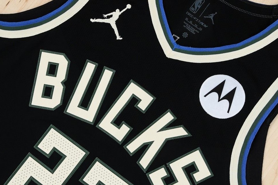 Οι Μπακς λανσάρουν τις νέες μαύρες εμφανίσεις, οι οποίες έχουν το το σήμα της Jordan Brand στο δεξί μέρος.