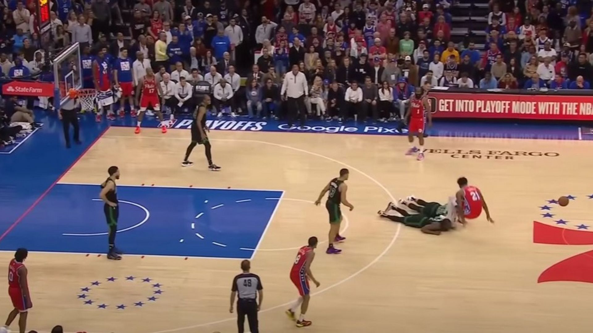 Ευτυχώς δεν υπήρξε κάποιος τραυματισμός, ωστόσο ο αθλητής των Σίξερς χτύπησε με το κεφάλι του στο παρκέ μετά το πάτωμα, τελικά όμως αυτό που υπέστη ήταν απλά πόνος στη μύτη.