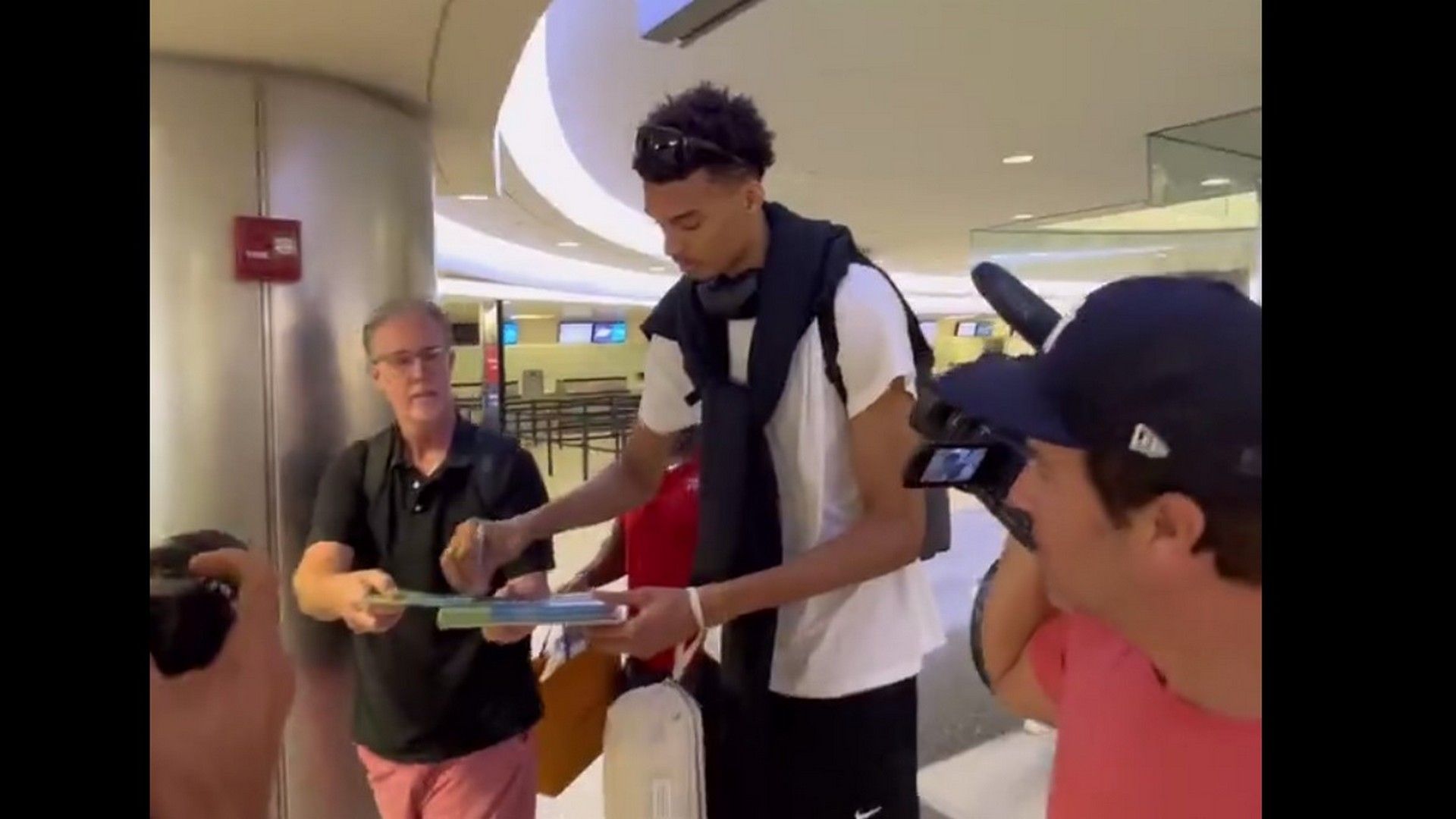 Ο Βίκτορ Γουεμπανιάμα συνομίλησε με κόσμο και υπέγραψε αυτόγραφα πριν πάει να προετοιμαστεί για τα Draft 2023, όπου αναμένεται να είναι το νούμερο 1, με τους Σπερς να καραδοκούν για την απόκτησή του μέσω της συγκεκριμένης διαδικασίας.