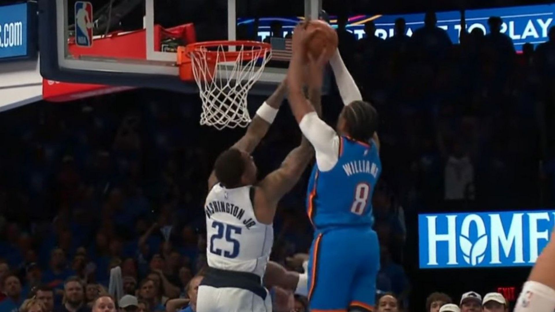 Ο Τζέιλεν Γουίλιαμς των Οκλαχόμα Σίτι Θάντερ πραγματοποίησε ένα εκπληκτικό κάρφωμα κόντρα στους Μάβερικς το οποίο του χάρισε την πρώτη θέση στο top 10 των Game 2 του 2ου γύρου των πλέι οφ του NBA.