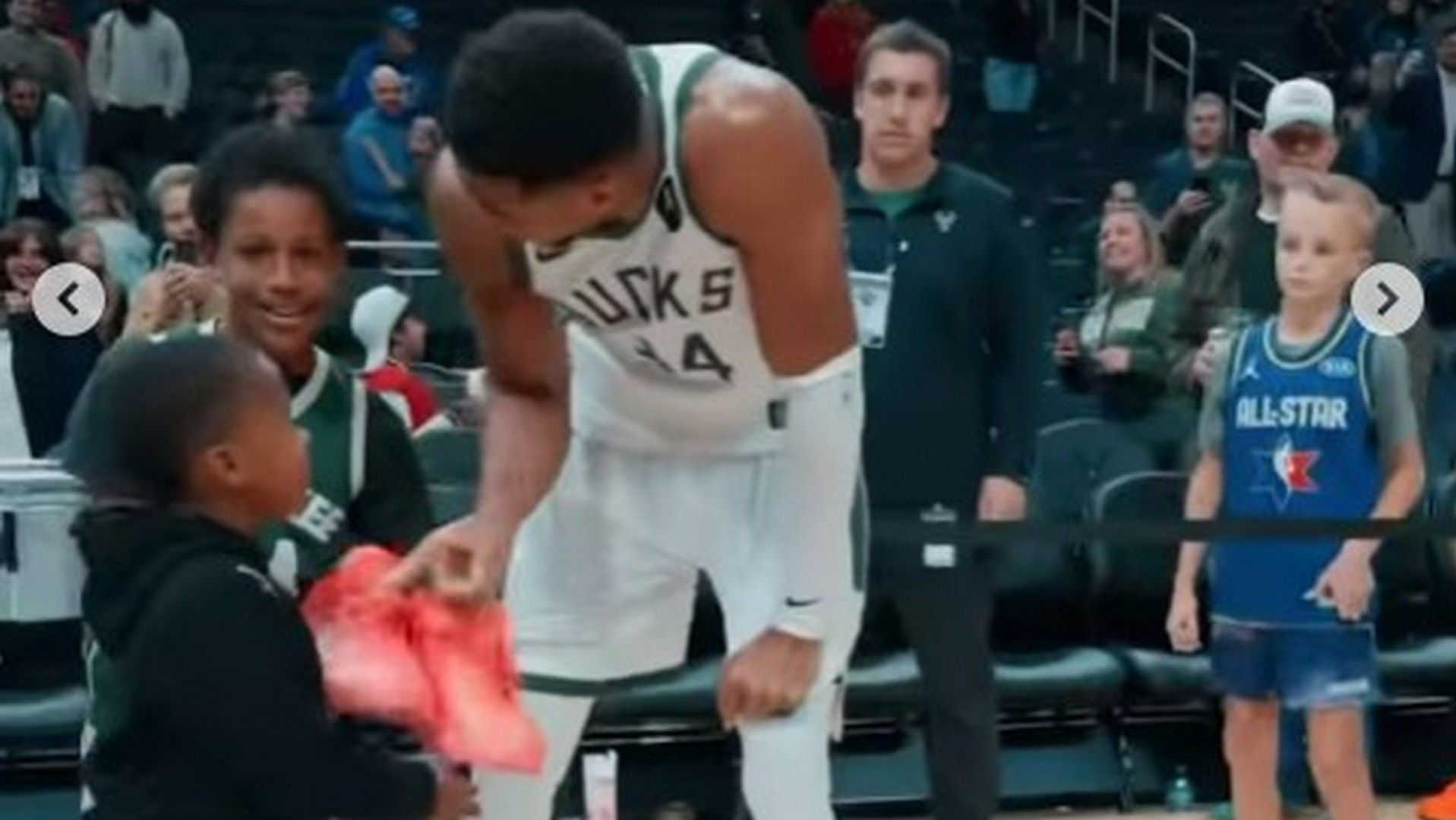 Ο Γιάννης Αντετοκούνμπο γνώρισε δυο μικρούς φίλους των Μπακς, τους δώρισε τα παπούτσια και τη φανέλα του, ενώ δεν ξέχασε να τους μοιράσει και... συμβουλές.