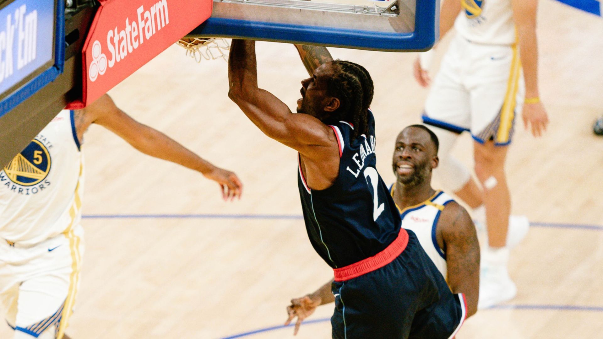 Το θρίλερ της βραδι΄άς έγινε στο Γκόλντεν Στέιτ, όπου οι Κλίπερς στο έξτρα πεντάλεπτο της παράτασης επικράτησαν των Γουόριορς χάρη στο ασταμάτητο δίδυμο Χάρντεν και Λέοναρντ που είχε 39 και 33 πόντους αντίστοιχα, με τους γηπεδούχους να τα περιμένουν όλα από τους Κάρι και Μπάτλερ που είχαν 36 και 30.