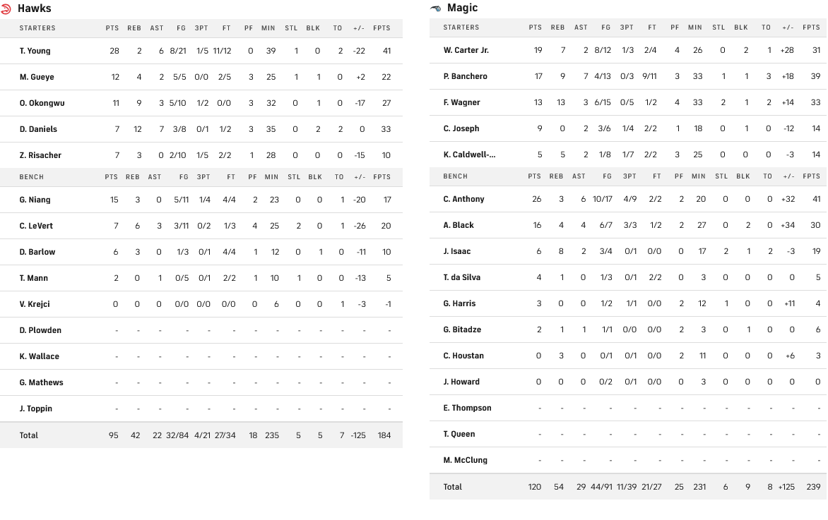 Σε παράσταση για έναν ρόλο μετέτρεψαν το παιχνίδι οι Μάτζικ κόντρα στους Χοκς για τα Play-In των θέσεων 7-8 καθ΄ως επικράτησαν με το ευρύ 120-95.