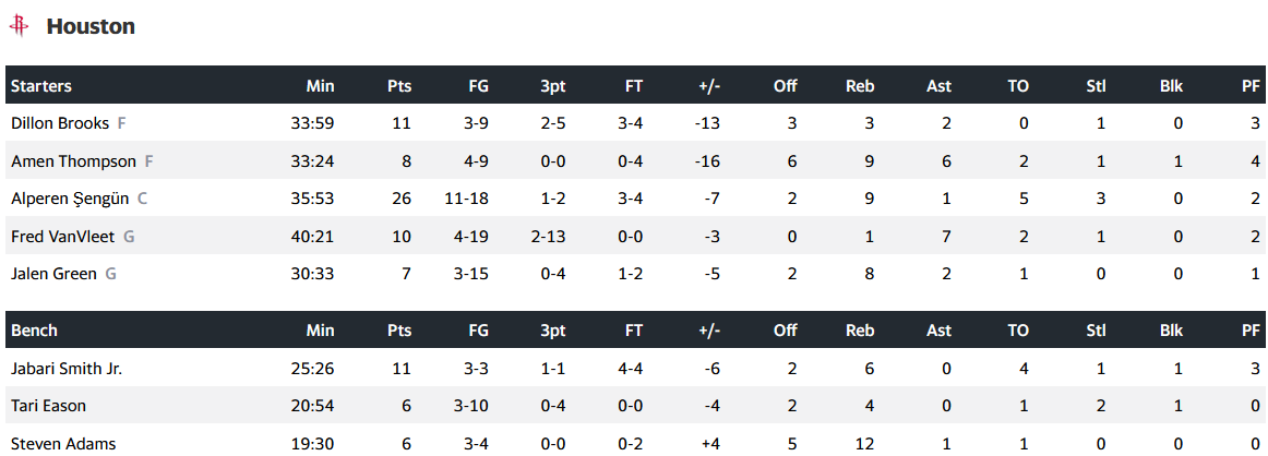 Από την άλλη, από το Χιούστον ξεχώρισε ο Άλπερεν Σένγκουιν με 26 πόντους και 9 ριμπάουντ.