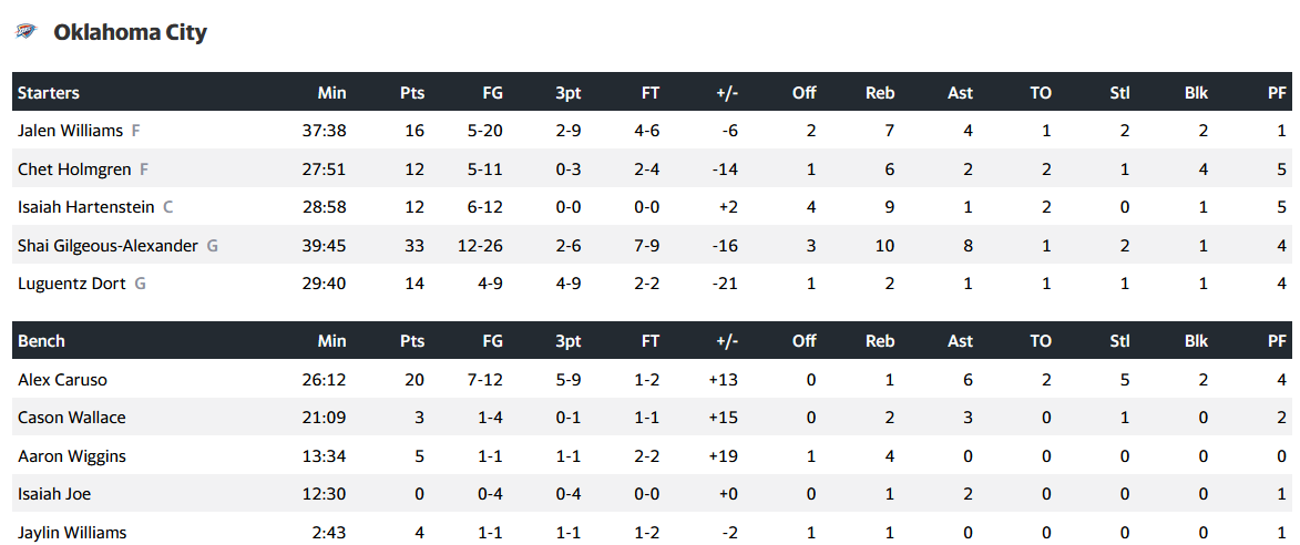 Από τους νικητές, πρωταγωνιστές ήταν ο Νίκολα Γιόκιτς με 42 πόντους, 22 ριμπάουντ και 6 ασίστ, καθώς και ο Άτον Γκόρντον με 22 πόντους και 14 ριμπάουντ.