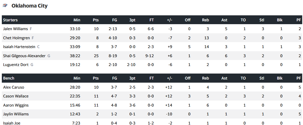 Aπό τους νικητές, πολύ καλή εμφάνιση σημείωσε ο Σάι Γκίλτζεους-Αλεξάντερ με 25 πόντους και από 6 ασίστ και ριμπάουντ, καθώς και ο Ιζάια Χάρτενστεϊν με 8 πόντους και 14 ριμπάουντ.