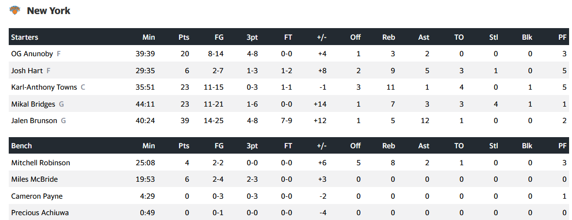 Από τους νικητές, πρωταγωνιστής και πρώτος σκόρερ ήταν ο Ζαλίν Μπράνσον με 39 πόντους, 12 ασίστ και 5 ριμπάουντ και ακολουθεί ο Καρλ-Άντονι Τάουνς με 23 πόντους και 11 ριμπάουντ.