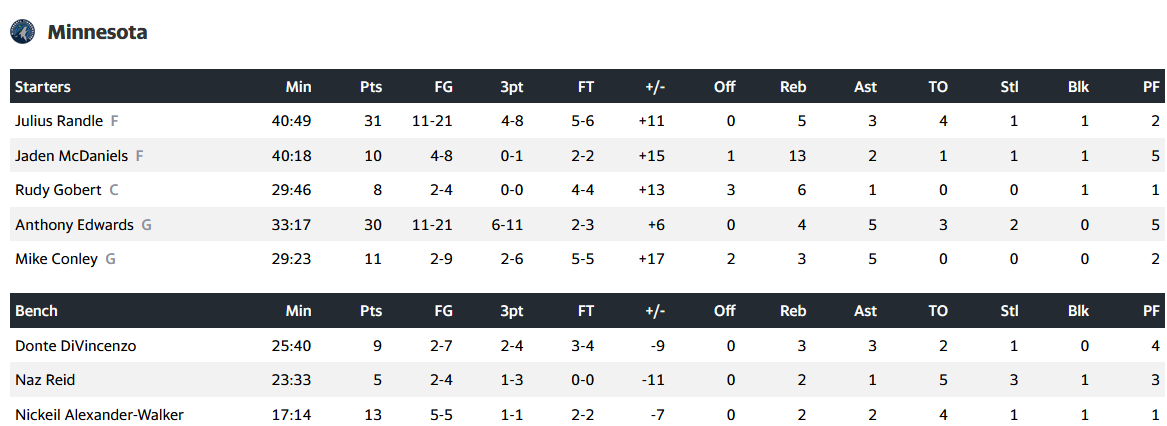 Η Μινεσότα, υπέταξε το Γκόλντεν Στέιτ, τα ξημερώματα της Τρίτης (13/5) και πήρε σημαντικό προβάδισμα στην σειρά των Playoff (3-1).