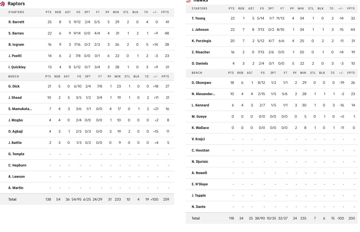 25 πόντους, οκτώ ριμπάουντ και πέντε ασίστ είχε ο Αρ Τζέι Μπάρετ, με τον Μπαρνς να ακολουθεί με 22 πόντους, έξι ριμπάουντ και εννιά ασίστ και τον Ντικ να έχει 21 πόντους. Για τους ηττημένους, ο Γιανγκ είχε 22 πόντους, όσους πέτυχε και ο Τζόνσον.